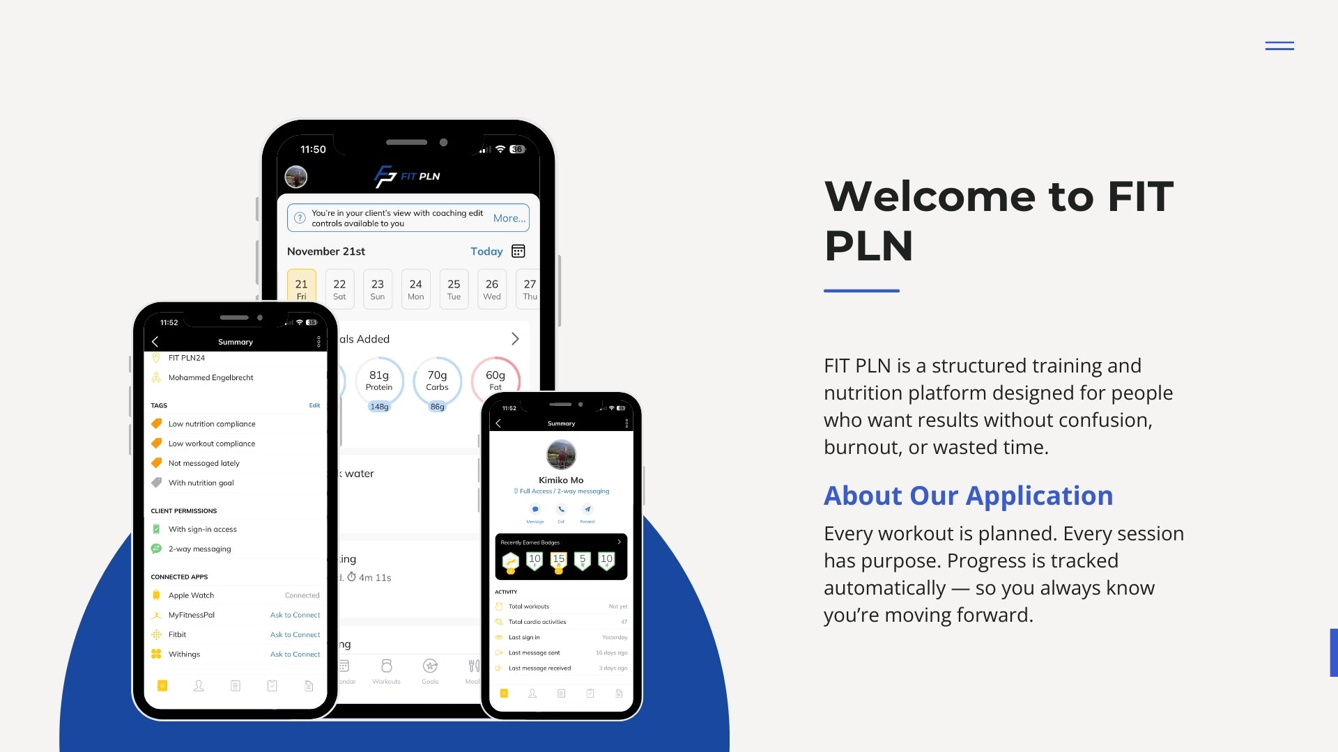 FIT PLN delivers personalized online fitness and nutrition program designed to help you achieve your health and fitness goals.
